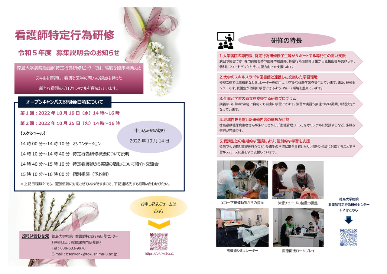 『令和5年度看護師特定行為研修 「研修生募集説明会」のご案内』
