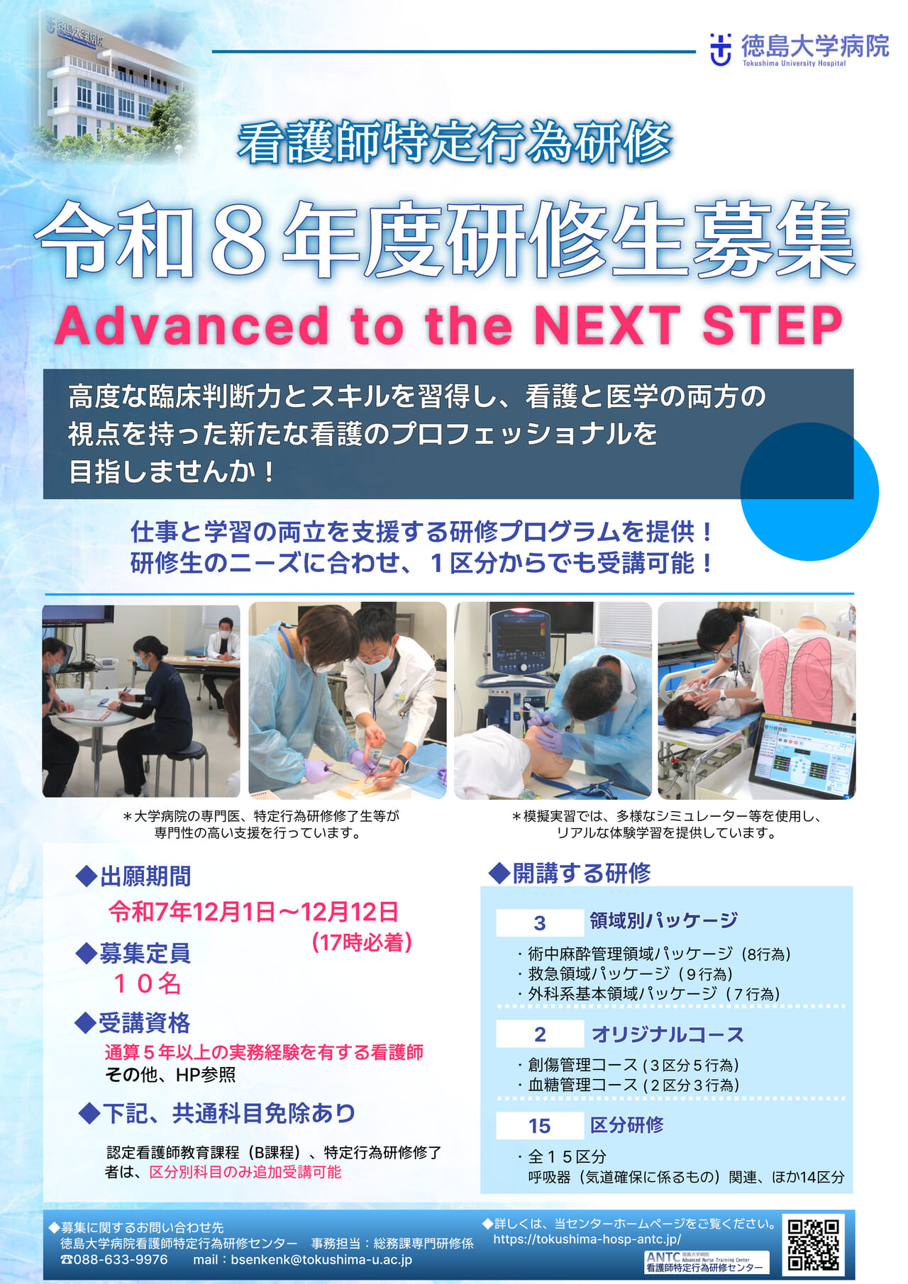 徳島大学病院看護師特定行為研修センターでは、令和8年度(2026年度)の研修生を募集します。