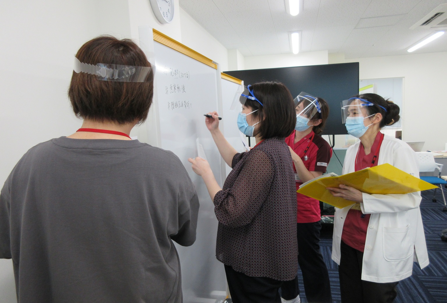 2021年6月23日 / 最終更新日時 : 2024年1月10日 ホームページ管理者 NEWS 2021年度看護師特定行為研修「共通科目」の集合研修を開始しました 5月14日より、e-learning学習と並行して、看護師特定行為研修「共通科目」の集合研修が開始となりました。1日目はweb研修となりましたが、2日目からは対面での研修を行っています。受講生は手指消毒を徹底し、マスクやフェイスシールドを使用して、感染予防に努めています。少し緊張しながらも、ロールプレイなどに熱心に取り組んでいます。当院の特定看護師も研修に参加し、受講生に助言したり一緒に学びを深めています。 Follow me! FacebookXBlueskyHatenaCopy